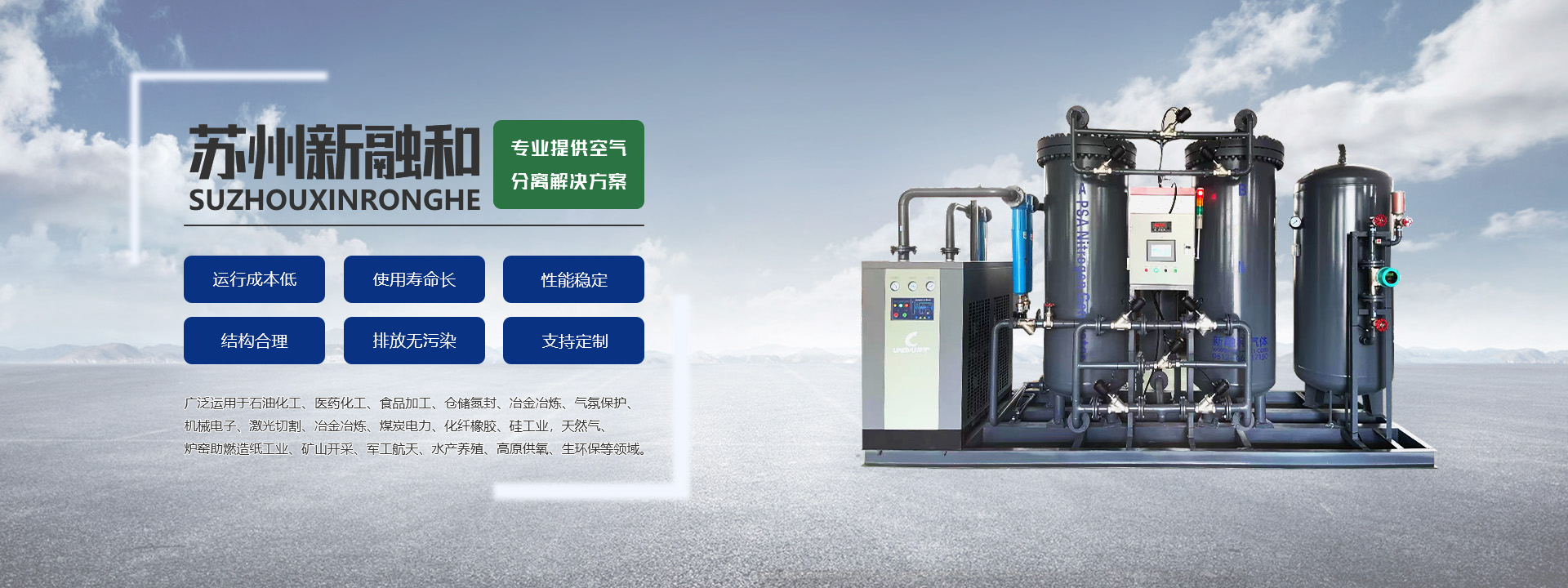 蘇州新融和氣體設備有限公司是一家集研究、設計、開發、制造、銷售及租賃各類空氣分離制氮設備,氮氣純化設備、氨分解制氫裝置、變壓吸附制氫系統、變壓吸附制氧系統、各種工業氣體純化裝置及水處理系統設備的專業制氮機廠家。